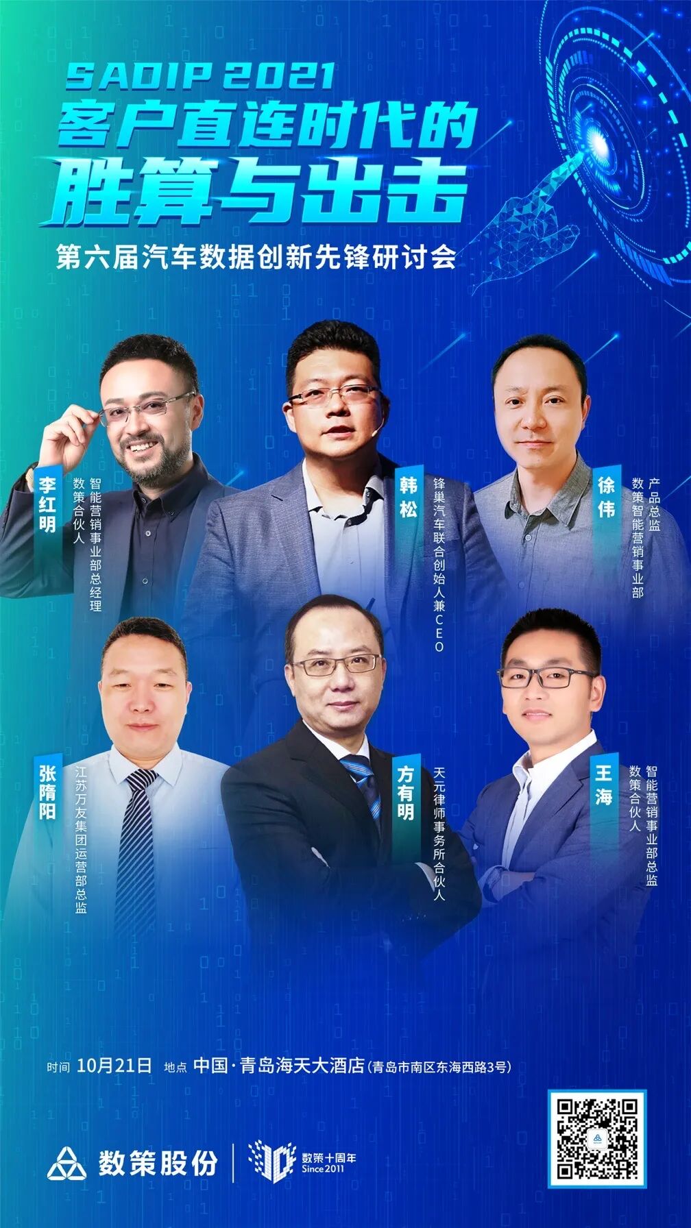 ( 2021年10月25日,上海) “客户直连时代的胜算与出击”2021第六届汽车数据创新先锋研讨会在青岛成功举办。本届研讨会由领先的汽车全产业链大数据解决方案提供商数策主办,是面向国内头部汽车主机厂和经销商集团,以主旨演讲和圆桌讨论为形式进行深入讨论和交流的闭门会议。